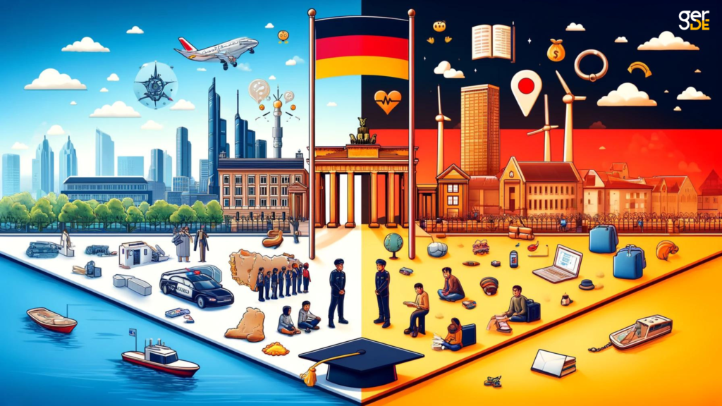 ประเด็นที่สองคือเรื่องผู้ลี้ภัย ในปี 2015 เยอรมนีได้เปิดรับผู้ลี้ภัยกว่า 1 ล้านคน ส่วนใหญ่มาจากซีเรียและตะวันออกกลาง ซึ่งสร้างความกังวลให้กับประชาชนบางส่วนในเรื่องของการปรับตัวทางวัฒนธรรมและผลกระทบต่อตลาดแรงงาน อย่างไรก็ดี รัฐบาลเยอรมนีได้ลงทุนอย่างมากในโครงการบูรณาการผู้ลี้ภัย ตามรายงานของสถาบันวิจัยเศรษฐกิจเยอรมัน (DIW) พบว่า ในปี 2022 มีผู้ลี้ภัยกว่า 400,000 คนที่สามารถหางานทำได้ ซึ่งช่วยเติมเต็มช่องว่างในตลาดแรงงานของประเทศ