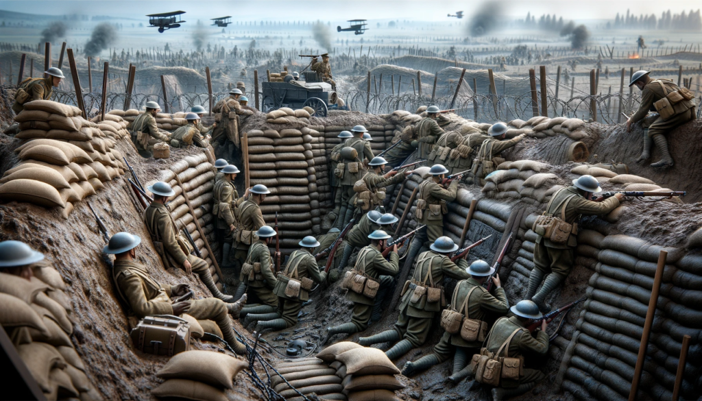 - การทำสงครามในรูปแบบสนามเพลาะ: ยุทธวิธีในการทำสงครามโลกครั้งที่ 1 ที่สำคัญคือการขุดสนามเพลาะเพื่อสร้างแนวการโจมตีและตั้งรับ ซึ่งทั้งสองฝ่ายได้ขุดหลุมลึกที่ยืดตัวเป็นแนวยาวตั้งแต่ทะเลเหนือจรดไปยังประเทศสวิตเซอร์แลนด์ ซึ่งกลายเป็นสัญลักษณ์ของสงครามที่สิ้นเปลือง ทั้งงบประมาณ แรงงานและความคุ้มค่า